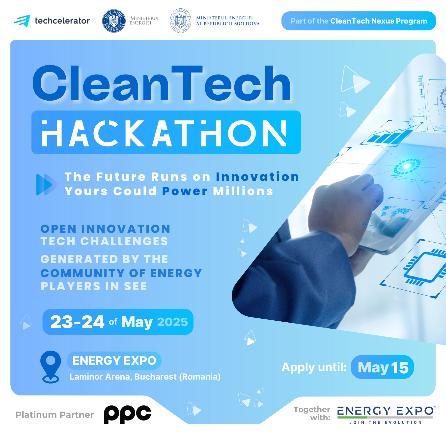 Descarcă aplicația ENERGY EXPO pentru a te înscrie în joc, pentru a-ți urmări progresul și pentru a accesa regulile complete ale jocului. Să înceapă vânătoarea!